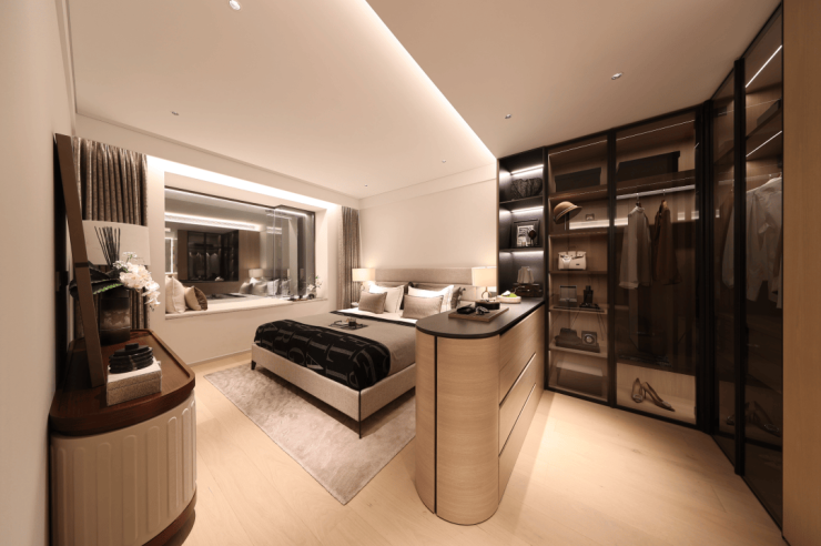 入户方面,相比2022年各大豪宅交付的毛坯大堂,天安1号的入户精装大堂尽显奢华,整个归家仪式感充满了艺术氛围。