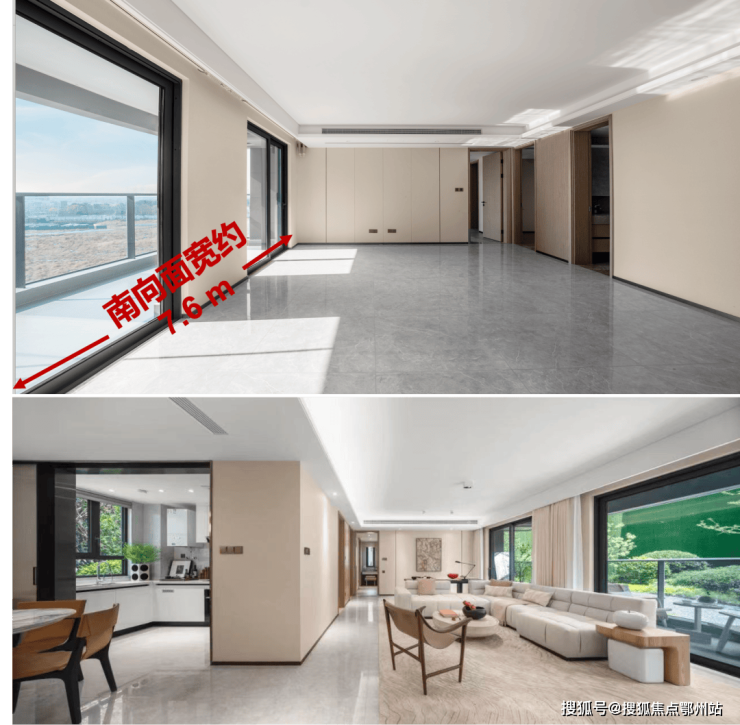 南向四开间,专梯入户,超凡三卫设计;约40㎡超大横厅,IMAX阔境生活;约7.6米阔尺廊台,无界视野体验。