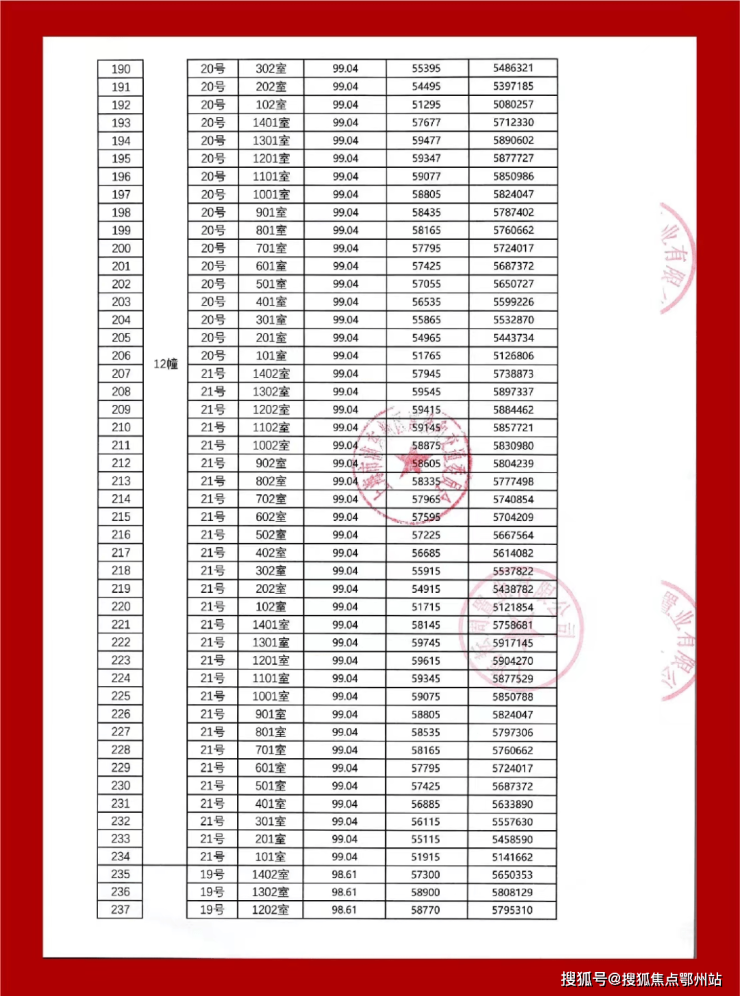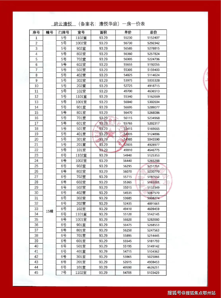 最新一房一价表: