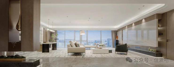 全面屏立面:公建化风格设计,为更大面积提升视野效果,南立面做到了将近90%的全玻璃面,犹如倾泻而下的银瀑展呈现代极简的审美艺术。