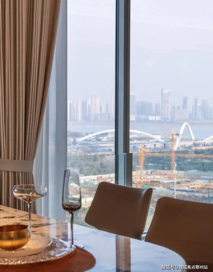 南向270°全景落地窗,俯瞰钱塘江潮涌、日月同辉、奥体莲花碗等标志性景观,窗景价值过亿。