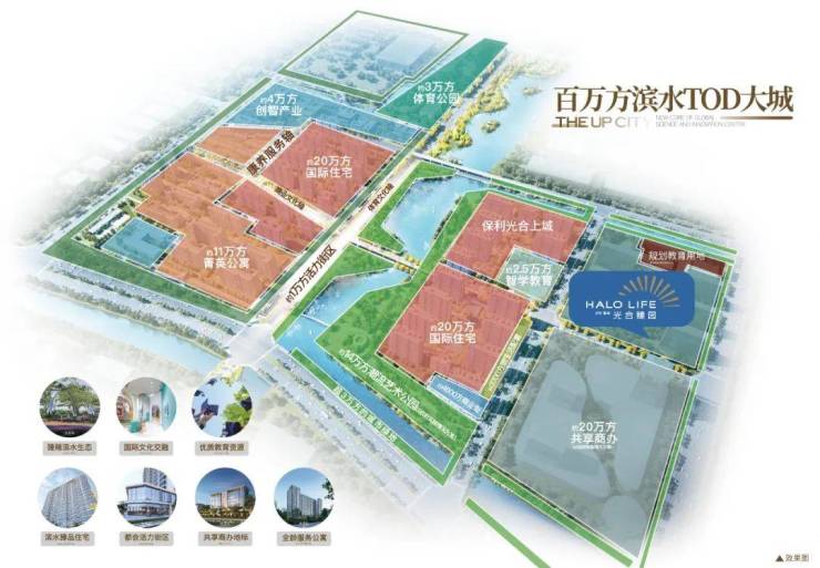 保利基于TOD超级底盘之上,以十字黄金中轴设计规划为底轴,打造集住宅、商业、办公、公寓、文化、教育、生态七大多元业态于一体的百万方滨水TOD大城,筑就面向未来、面向国际的消费新主场、创新企业链、全系配套生活圈等活力新场域;自此,一座无界共融的未来理想单元启幕上海崭新想象。