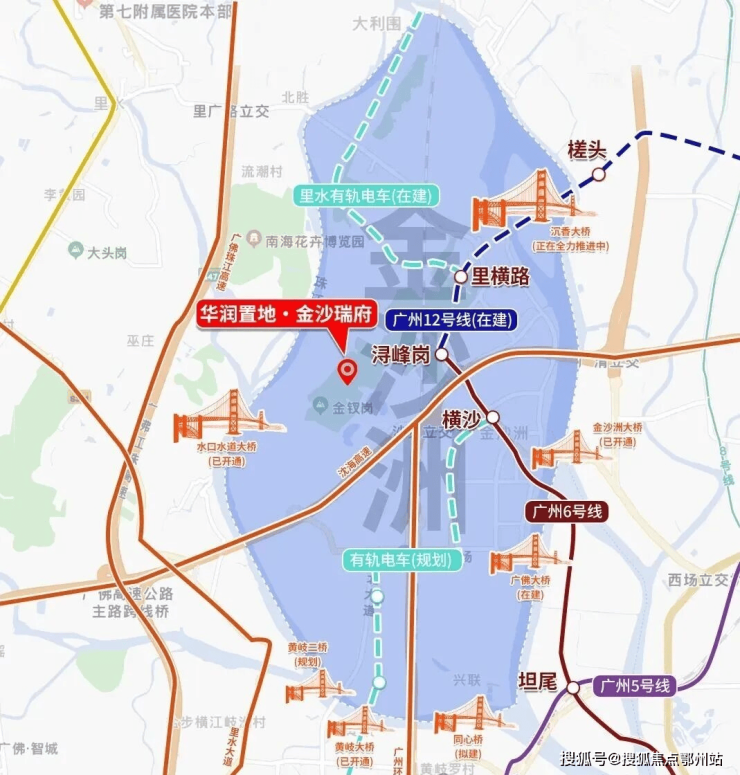 项目距离地铁6/12号线浔峰岗站直线1.5公里。自驾有金金沙洲大桥、大坦沙大桥、沉香大桥在建、同心桥(在建)、水道口大桥、黄岐大桥、丰岗大桥、碧江大桥(规划中)全面环绕。