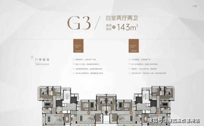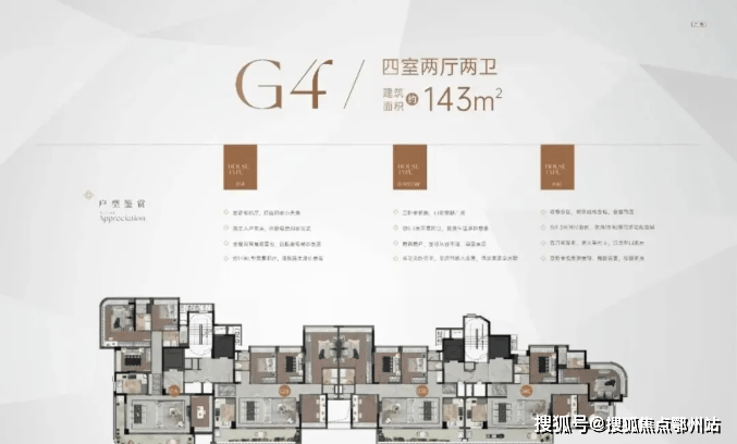 G4栋:17层,4梯4户,全部141平,客厅东北向,主卧西南向。