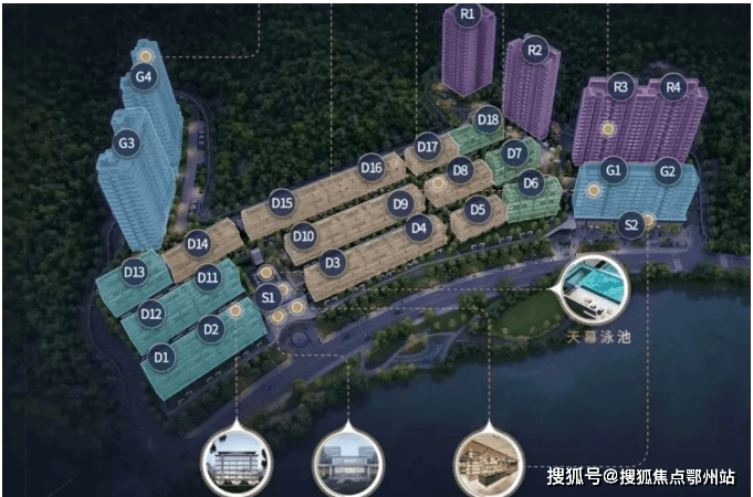 总楼栋:4栋9-17层小高层,18栋4-6层二三叠院