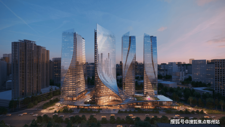 项目总建筑面积26.05万平方米,由4栋140米塔楼簇拥奥体公园的优美景观,形成欢迎的态势,邀国内外游客共襄盛举。其中T1、T2为公寓、T3为酒店(安达仕酒店)、T4为办公楼。由会议中心、酒店宴会厅、商业、艺术中心及社区配套组成的基底。
