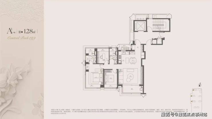 我们就拿最小的建面约128㎡的户型来看: