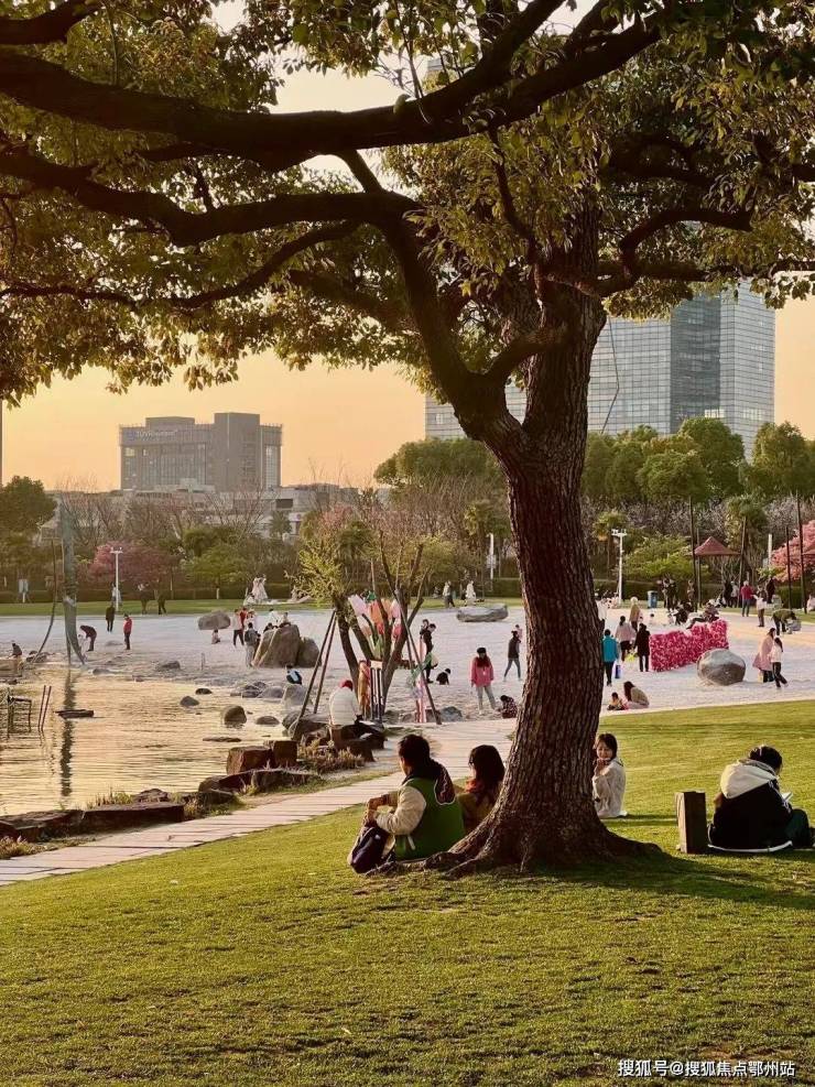 落日时可挽着爱人,一边漫步湖畔遛娃遛狗,人与自然融为一体。