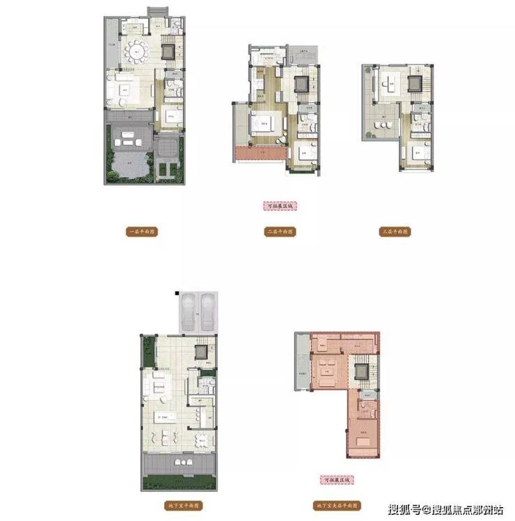 凡是一楼设计了老人房的,必是带卫生间的套房,对长者特别友好。以约250㎡C户型为例,开间约9.6米,做到了整整4个套房+1个书房。
