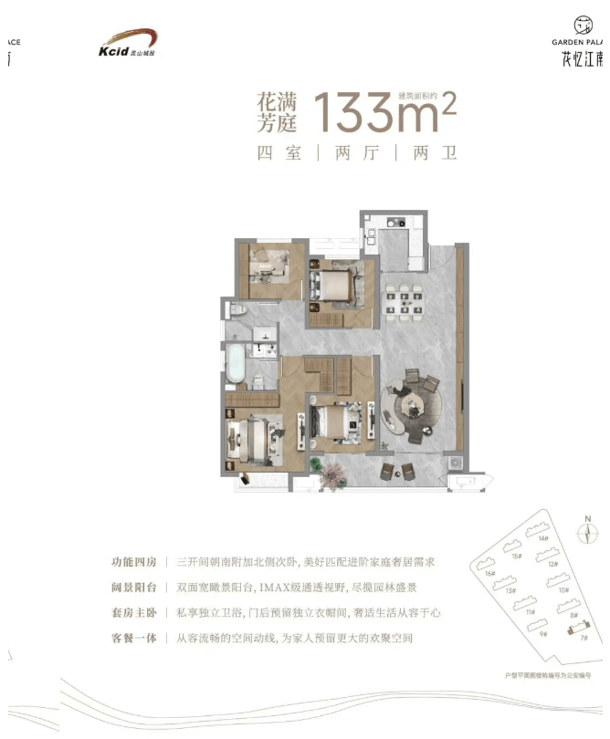 在售户型:113㎡/133㎡三房户型,133㎡四房户型