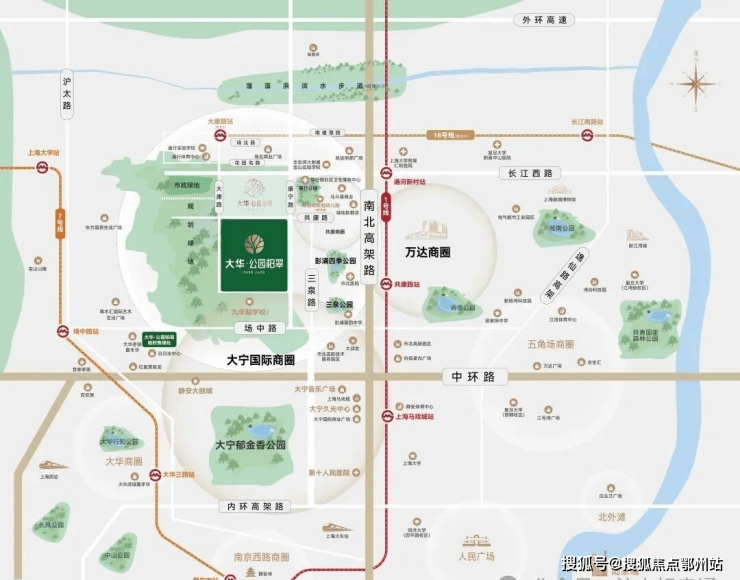【大华·公园柏翠】位于宝山区康宁路长江西路,属中外环间,项目距离1号线通河新村站约1.4公里,可一线直达人民广场、淮海路、徐家汇、莘庄等CBD;距离“换乘王”之称的18号线康宁路站(规划中)仅约500米