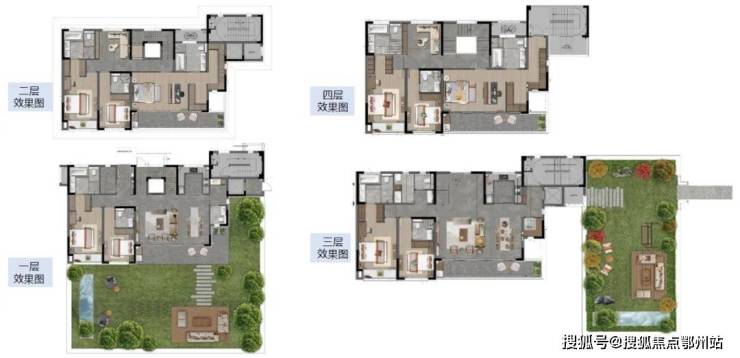 C户型:建筑面积约335㎡,4叠类独栋,5房6卫,独立南北入户,约17米大面宽、300㎡私家花园,全屋套房设计,私密性。