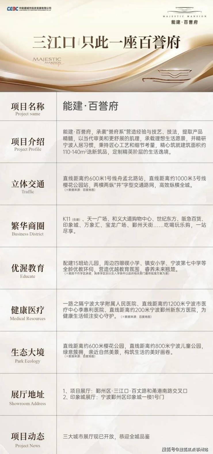 温馨提示:本项目备案名为“百誉府”,推广名为“能建·百誉府”,开发商为“ 中能建 未来社区建设发展 (宁波) 有限公司”。