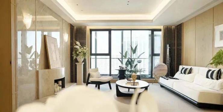 该户型打造了约4.8米面宽阳台,阳光和煦,带来的十足的尺度感。