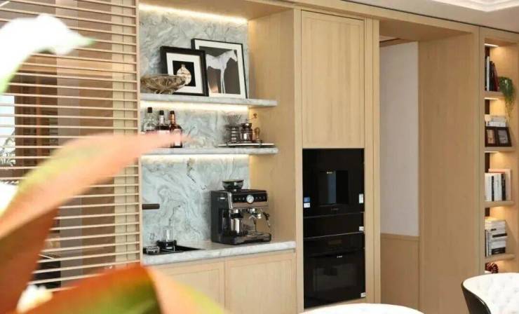 定制实木通顶餐边柜及书柜,不光有多重收纳功能还配有博世三件套: