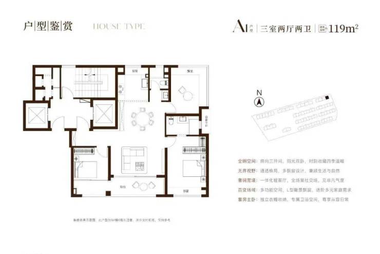 建面约119㎡三房,奢享140㎡的尺度感