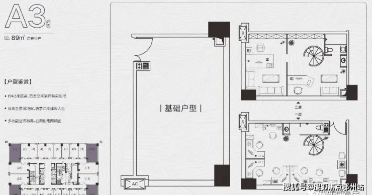 在售产品:①13-33层是4.5米层高LOFT:47㎡、83㎡、89㎡ (主推)