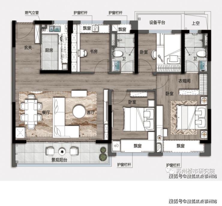 主卧配备独立卫浴、观景飘窗,私享悠静时光