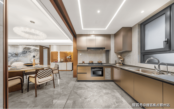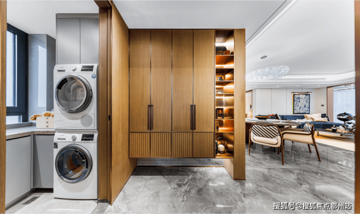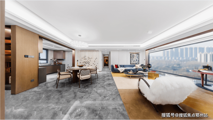 去过道化设计、洄游式动线,亦将客餐厨及面宽约9.15米巨幕阳台四大公区贯通,拉伸的不仅仅是尺度,更是举手投足间的优雅和从容。