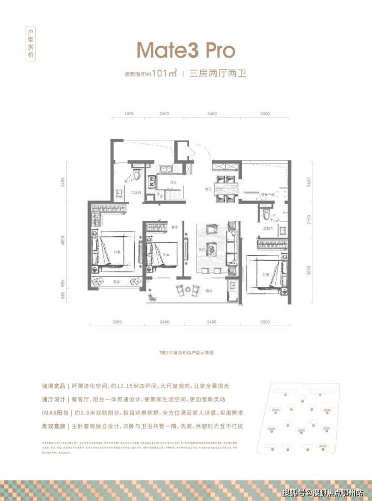 建面约101㎡的三房两卫为良语云缦的主力户型, 四开间朝南,面宽达到了约12米, 这是什么体验?