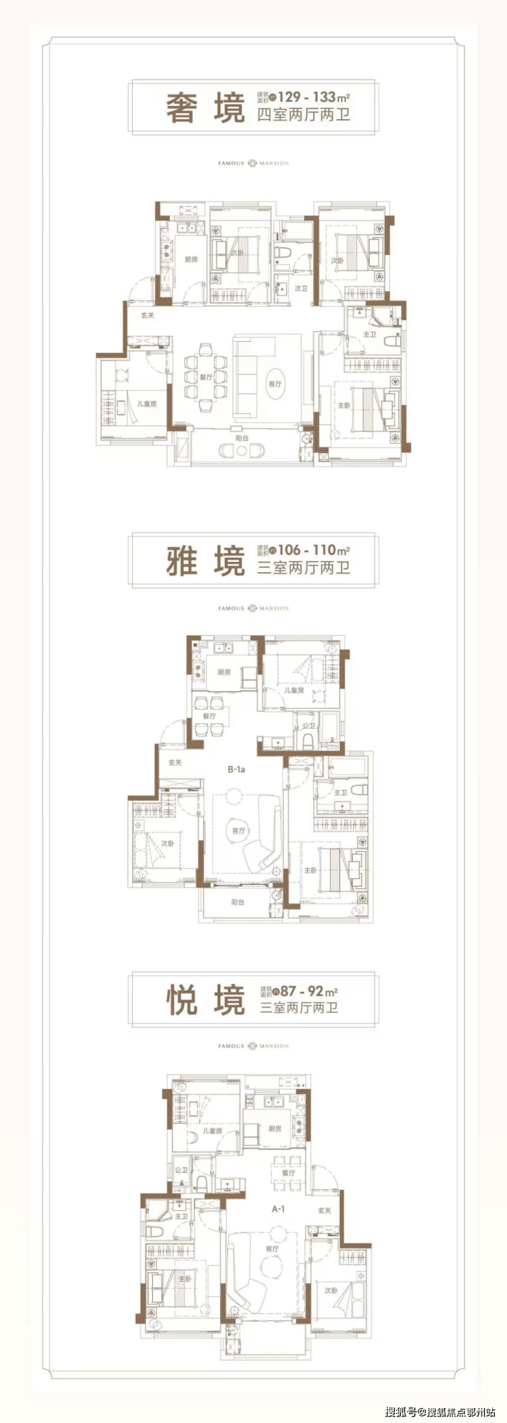 建面约90-129㎡精装3-4房
