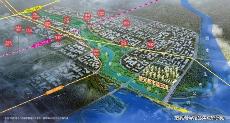 楚天都市·蓝玉湾,位于长江新城阳逻之心,独享阳逻之心蓝玉项链生态公园与倒水河交汇围合的人居福地,观绿地与河流合抱,听长江与倒水交流。