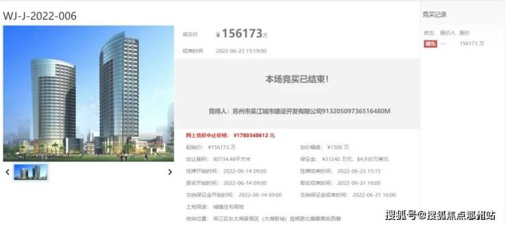 2022年6月,吴江城投以156173万元底价竞得该地块,楼面价14880元/㎡。根据出让要求,地块内成品住宅比例100%,成品住房装修综合单价不低于1000元/㎡。