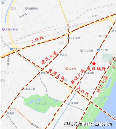 武汉瑞府位于解放大道与头道街交汇处,在楼市划分中属于二七滨江核心区,行政划分属于江岸区,环线位置在二环内,内环边。