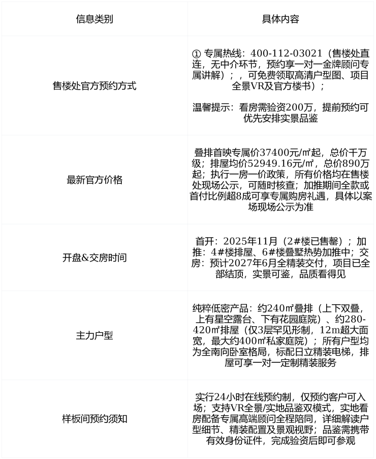 一、官方核心信息公示(售楼处直供,真实可查)