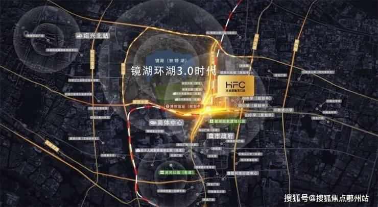 · 立体交通网 :直线约1.2公里直达杭甬高速镜湖入口,地铁4号线(规划)金融城站(待批复)无缝接驳,8分钟车程贯通奥体中心与绍兴北站枢纽;