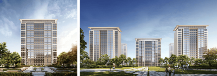 围绕“一轴·一心·四园”的景观设计理念 ,以中央花园和健康静谧的组团花园,通过现代主义建筑风格演绎,呈现充满运动活力和健康生活的公园式品质社区。
