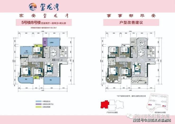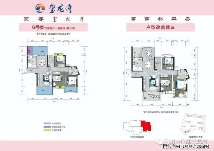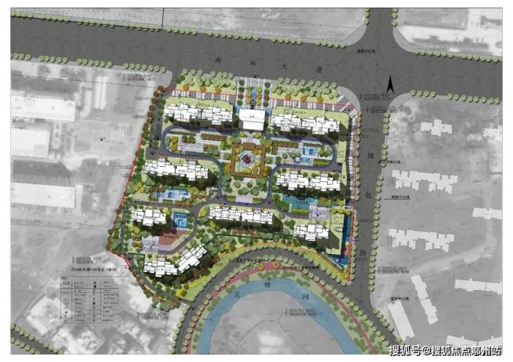 根据上面的平面图来看,伦红·玺龙湾北邻南环大道、南邻元堡河,为高层建筑,住宅共8栋,还规划有一所幼儿园。