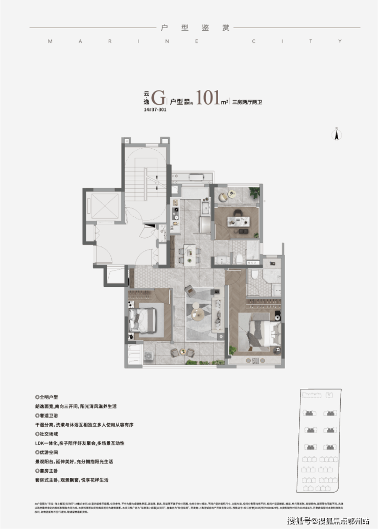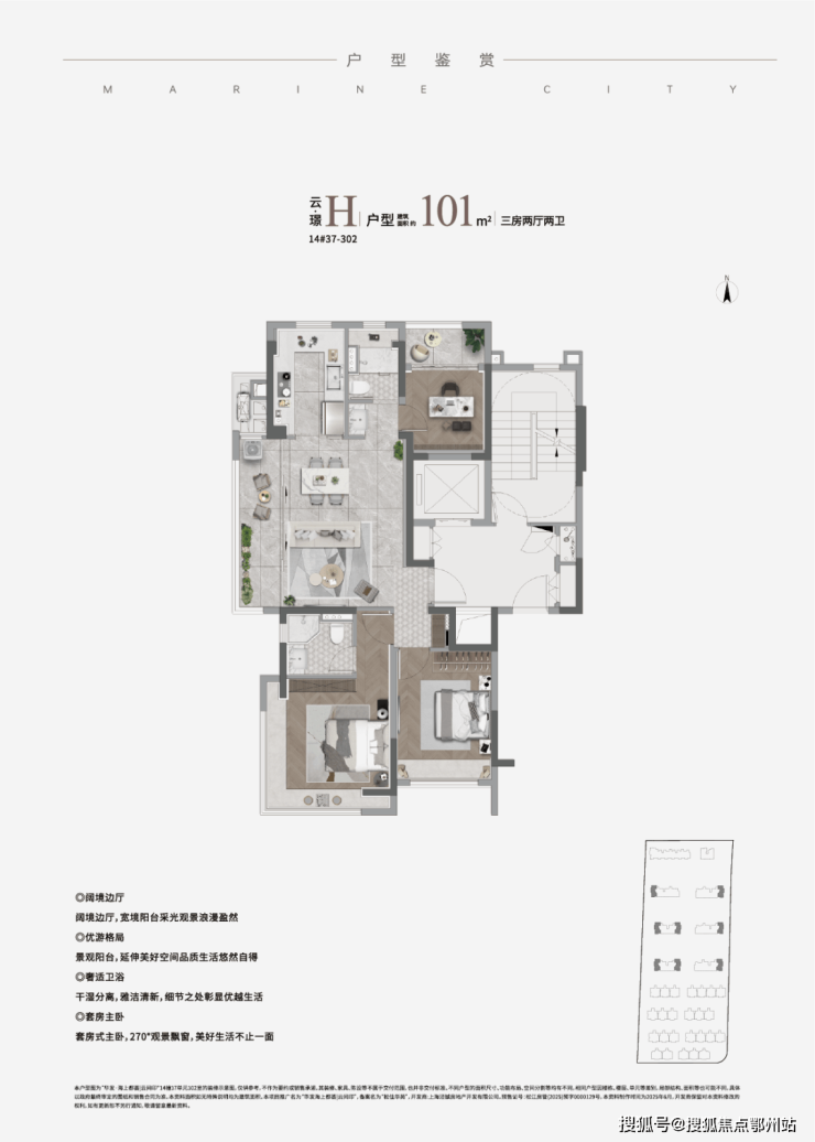 高层 全能三房建面约91-101㎡, 全屋多阳台+多飘窗组合,扩容空间可实现自定义创意打造,增加室内采光面,让生活更通透!
