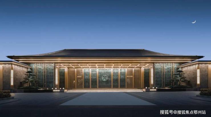 溪上月约70米的奢阔大门,两侧造型罗汉松,呈中轴对称布局,尊崇显赫。 香槟金铝板吊顶,搭配 范思哲黑、普拉达绿等多种奢石,时尚隽永,这样的成本投入和呈现,在梁溪北,首屈一指!