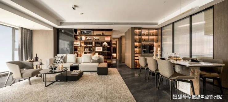 整个公区采取LDKB一体化设计,全玻璃推拉门的设计,视觉上的纵深感进一步延伸,每天都是“一镜到底”的阳光生活。