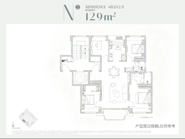 将推出建面约129㎡四叶草4房神户型