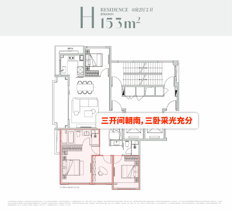 三开间朝南的格局延伸出三卧朝南的贴心设计 ,让阳光能充分洒满每一个居住空间。