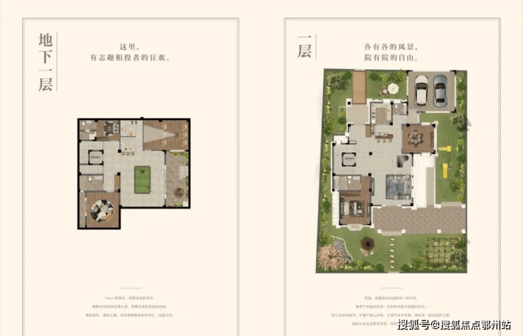 一楼:南北双花园,北入户,北侧有两个停车位,室内有一个老人房,厨房和客厅,南侧拥有超大的花园;