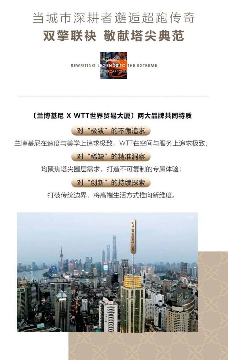 外滩塔尖「WTT兰博基尼·公寓」建面约107-381㎡大平层,总价900万起,线上预约看房