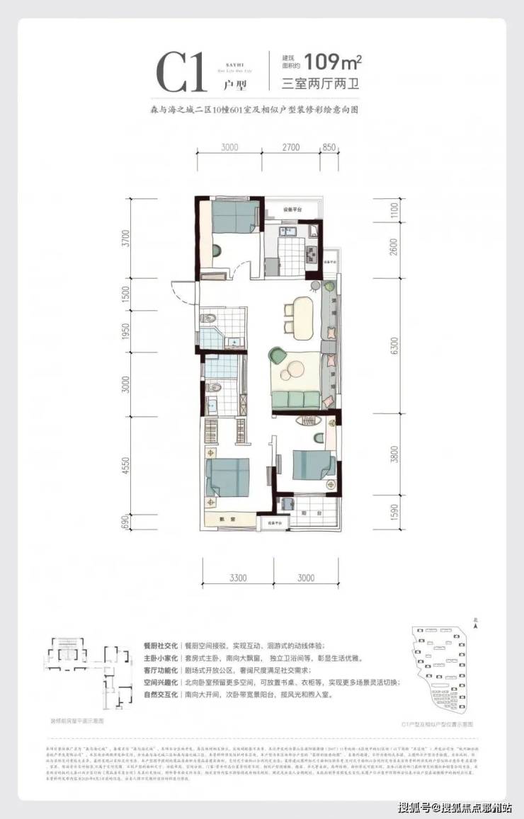 3|主卧小家化:卧室预留更多功能空间,提升空间与时间效率,让优雅与私密兼享。 4|空间兴趣化:在阳台、次卧、多功能间进行情景化定制,满足多种功能的兴趣承载。