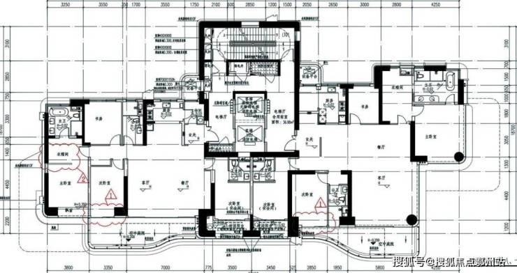 本次公示的是1#的平面图,一梯两户设计,只有种4房3卫设计。