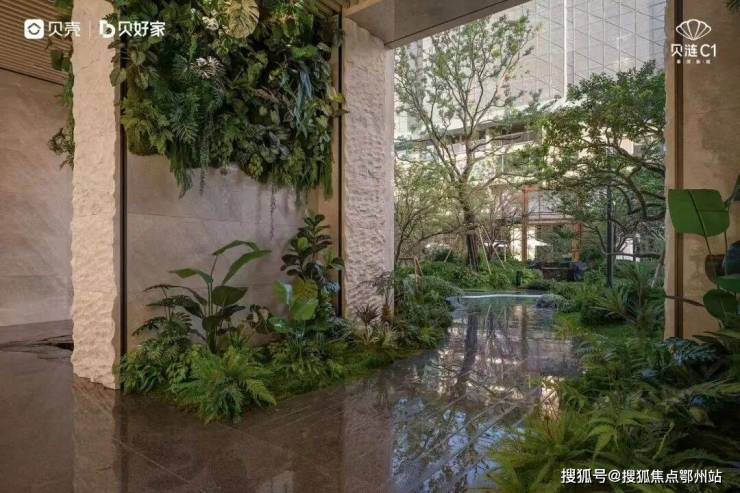 贝好家上海1号作品,秉持C2M理念,重新定义人向往景观自然、空间服务于人、智能懒生活三大未来人居新标准;自规划之初便着眼于与城市的呼应,突破性地打造了风景连廊,结合街角绿化“贝之花”与单元门屋顶景观,共同构成了贝涟C1的立体景观界面。