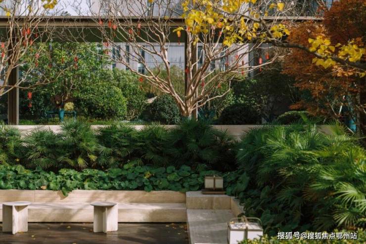 走进社区, 澜道佑澜打造的景观秘境更让人沉醉 。约10000㎡“翡翠之钻”下沉式中央景观,以五重归家动线铺就尊崇仪式感,上百种珍稀花草与名贵树木错落交织,流水潺潺间尽显自然意趣。