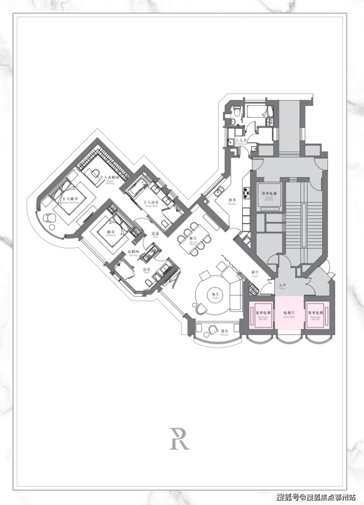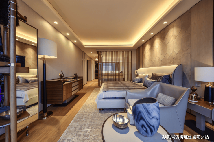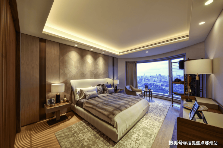 豪华公寓西套在空间设计上,以中性色系为主调,轻快明亮的布局立现眼前。客厅中巨大的落地玻璃窗设计,室内的温馨与惬意与窗外景观恰如其分的结合,尽显典雅气质。