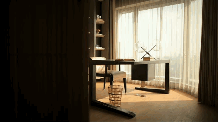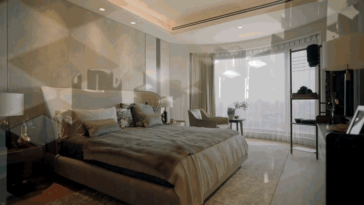 公寓的房间由著名的设计大师梁志天设计布局。空间的简约大气由每一个精心打造的细节所组成,如精致动人的饰面、纯天然的材料、优质大理石的嵌入,一切都让你在不经意间发现别样的美感。房间客厅中,素雅的灰色墙面营造出静谧优雅的氛围,空间视觉的塑造与都市韵律相得益彰。Giorgetti定制家具、B&B全屋豪华家具、FLOS经典灯具的选择,彰显着设计师对美学平衡的精准把握。