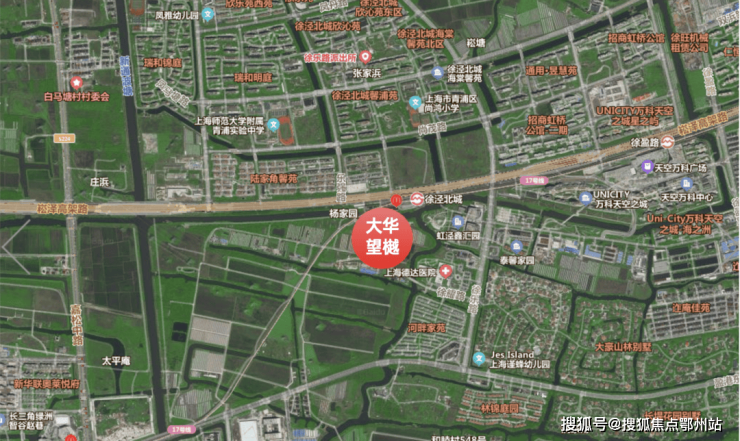教育与医疗配套相对完善。教育资源上,周边有青浦区徐泾第一小学、上海市青浦区徐泾中学等多所市、区级重点学校,南侧还规划有幼儿园,从小学到初中可实现优质教育覆盖,同时区域内分布十余所国际学校,能满足不同教育需求;医疗资源方面,距离上海市青浦区中医医院(二甲)仅2.5公里,开车8分钟可达,东侧有德达医院及在建的远大健康城,周边还有徐泾镇社区卫生服务中心,可为业主健康提供全方位保障。