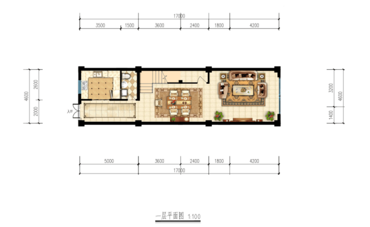 房屋进深: 一楼17米、二楼17米、三楼12米