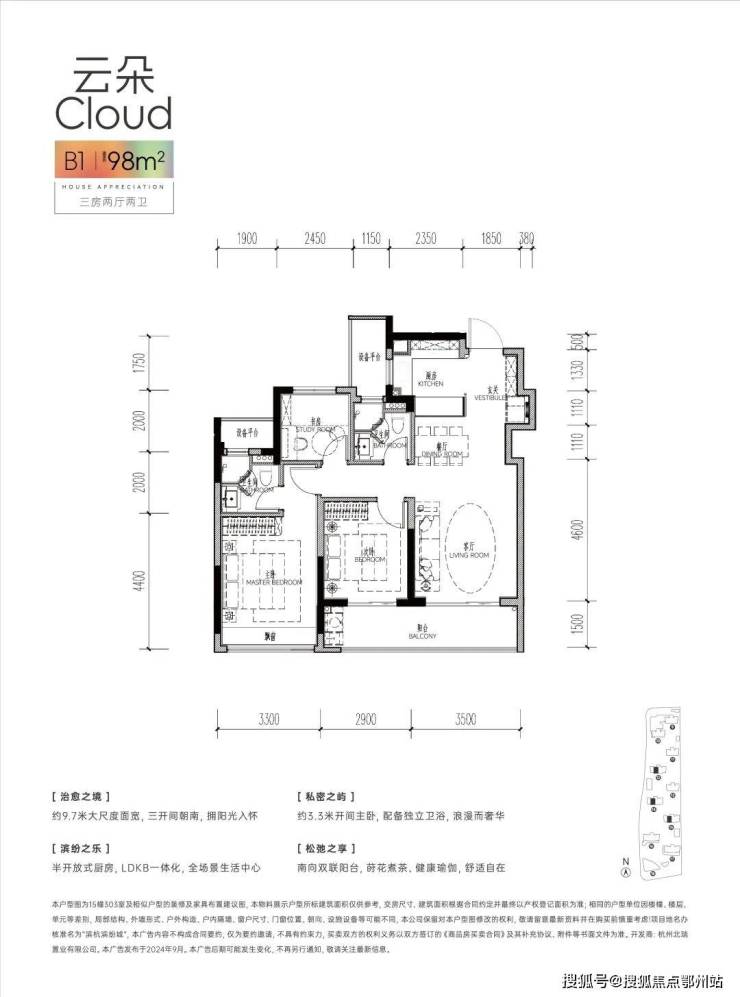 建面约98方B1户型: