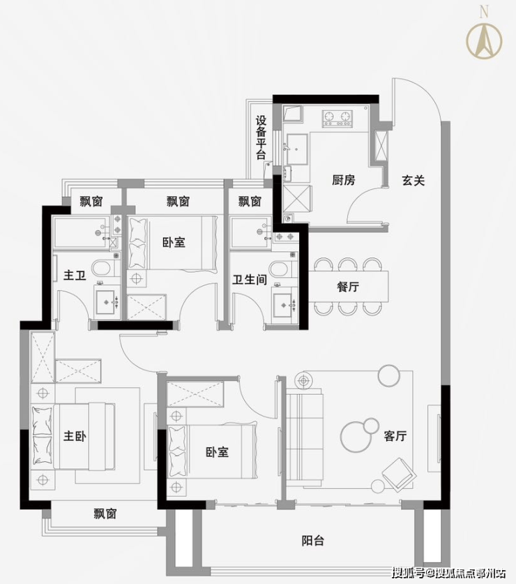 约98平三房两厅两卫
