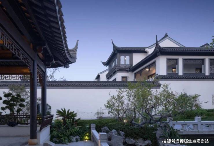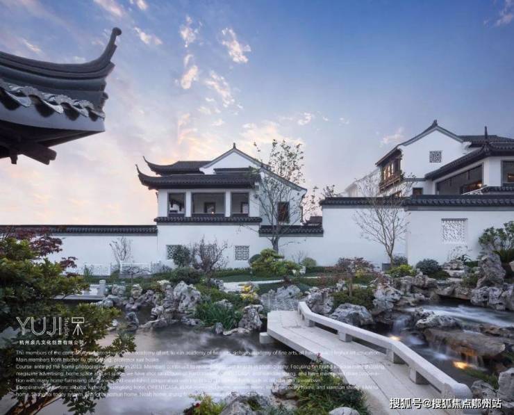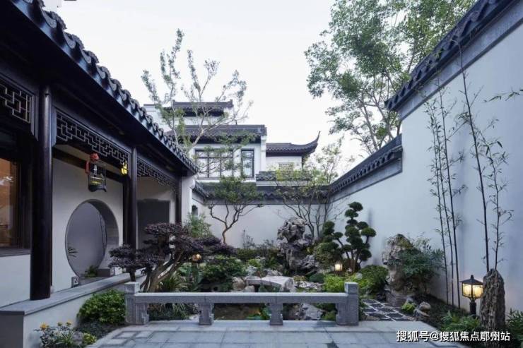 富春玫瑰园中国院子除传承绿城中式产品中的青瓦白墙、飞檐庑廊、影壁漏窗、水榭亭台等中式建筑元素外,